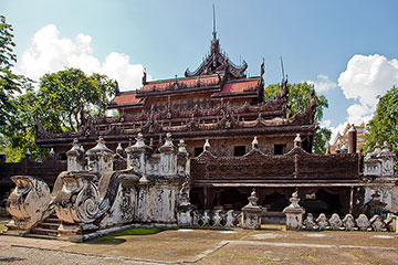 Amarapura lies on the west bank of the Ayerwaddy River. The name means the city of immortality. It is the former capital of Myanmar and the location of the first British Embassy in Myanmar. Famous for its picturesque monuments like the U Bein Bridge (the oldest and longest teak wood bridge in the world) and the Mahagandayon Monastery, and silk weaving factories. It is historically referred to as Taungmyo (Southern City) in relation to Mandalay. Amarapura today is part of Mandalay, as a result of urban sprawl. The township is known today for its traditional silk and cotton weaving, and bronze casting. It is a popular tourist day-trip destination from Mandalay.
