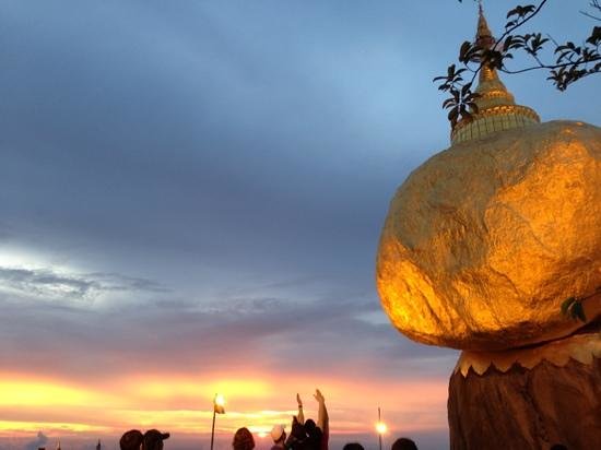 One of the wonder of the world, Kyaikhtiyo Pagoda (Golden Rock), was built in 574 B.C and is located in the small town called Kyaikhto, in the Mon State. The tradition is that after the hermit had obtained the hair from the Buddha, he was carrying it on his head inside his hair knot till he found a boulder which resembled his head, and so he built the pagoda on its enshrining the relic, substituting the boulder for his over head. The meaning of Kyaik Hti Yo in Mon language means “the pagoda carried on the hermit’s head”. Located about five hours by road from Yangon, The Golden Rock is Myanmar’s 3rd holiest shrine, behind Shwedagon Pagoda and the Maha Muni Buddha.