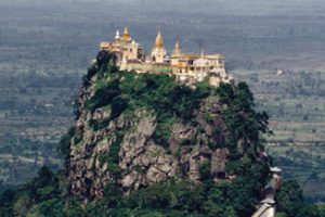 Breakfast at the hotel. Morning visit to Mt. Popa, a one and half hour drive from Bagan on the road to Mandalay, rises 1520 metres into the sky. Mount Popa is perhaps best known as a pilgrimage site, with numerous Nat temples and relic sites atop the mountain. Climbing to the summit takes about 45 minutes and you can visit the Mahagiri Shrine dedicated to the "Nats" (spirits) at the top where there is a wonderful panoramic view.